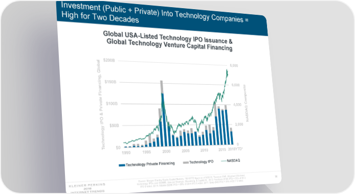 Investment (Public + Private) Into Technology Companies = High for Two Decades Global USA-Listed Technology IPO Issuance & Global Technology Venture Capital Financing $200B 8,000 obal Gl ing, $150B 6,000 ite nc Fina mpos te a Co $100B 4,000 iv r Q P DA & S O NA IP $50B 2,000 hnology c e T $0 0 1990 1995 2000 2005 2010 2015 2018YTD* Technology Private Financing Technology IPO NASDAQ Source: Morgan Stanley Equity Capital Markets, *2018YTD figure as of 5/25/18, Thomson ONE. All global USA-listed technology IPOs over $30MM, data per Dealogic, Bloomberg, & Capital IQ. 2012: Facebook ($16B IPO) = 75% of 2012 38 IPO $ value. 2014: Alibaba ($25B IPO) = 69% of 2014 IPO $ value. 2017: Snap ($4B IPO) = 34% of 2017 $ value.