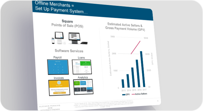 Offline Merchants = Set Up Payment System… Square Estimated Active Sellers & Points of Sale (POS) Gross Payment Volume (GPV) 3MM $90B obal Gl , rs Software Services e ll 2MM $60B e S obal Payroll Loans e Gl , tiv V c A GP ted 1MM $30B tima s E Invoices Analytics 0 $0 2013 2014 2015 2016 2017 GPV Active Sellers Source: Square (5/18). Note: Active Sellers have accepted five or more payments using Square in the last 12 months. In 11/15 Square disclosed it had 2MM users and in 3/16 disclosed it was adding 100K sellers per quarter 51 – assuming seller trends remained constant, Square had approximately 2.8MM active sellers at the end of 2017. (~2.8MM = 2017E)