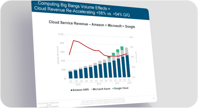 ...Computing Big Bangs Volume Effects = Cloud Revenue Re-Accelerating +58% vs. +54% Q/Q Cloud Service Revenue –Amazon + Microsoft + Google $10B 100% $8B 75% nue e th $6B Rev 50% Grow /Y obal$4B Y Gl 25% $2B $0 0% Q1 Q2 Q3 Q4 Q1 Q2 Q3 Q4 Q1 Q2 Q3 Q4 Q1 2015 2016 2017 2018 Amazon AWS Microsoft Azure Google Cloud Source: Amazon AWS = Company filings, Microsoft Azure = Keith Weiss @ Morgan 185 Stanley (4/18), Google Cloud = Brian Nowak @ Morgan Stanley (5/18). Note: Google Cloud revenue excluded in Y/Y growth rate calculation due to limited quarterly estimates.