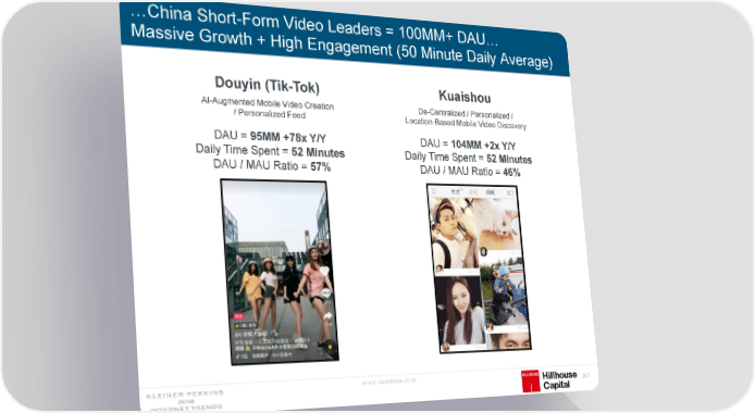 …China Short-Form Video Leaders = 100MM+ DAU… Massive Growth + High Engagement (50 Minute Daily Average) Douyin (Tik-Tok) Kuaishou AI-Augmented Mobile Video Creation De-Centralized / Personalized / / Personalized Feed Location-Based Mobile Video Discovery DAU = 95MM +78x Y/Y DAU = 104MM +2x Y/Y Daily Time Spent = 52 Minutes Daily Time Spent = 52 Minutes DAU / MAU Ratio = 57% DAU / MAU Ratio = 46% Source: QuestMobile (4/18). 247