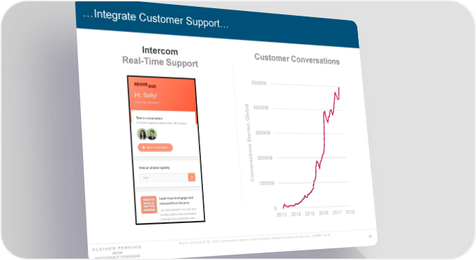…Integrate Customer Support… Intercom Customer Conversations Real-Time Support 500MM 400MM obal Gl d, 300MM tarte S tions a 200MM rs e nv Co 100MM 0 2013 2014 2015 2016 2017 2018 Source: Intercom (5/18). Note: Conversations started include messages initiated by business & customers. (500MM = 2018) 56