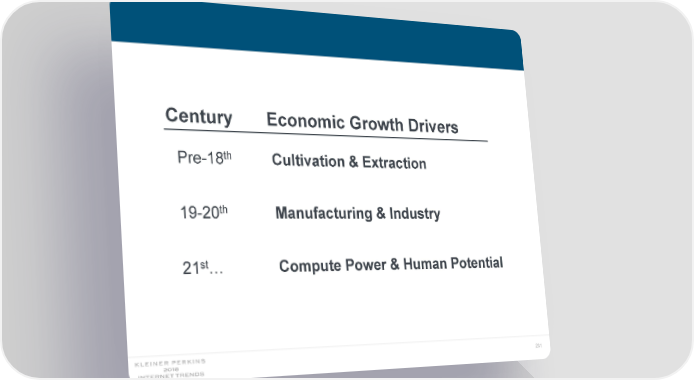 Internet Trends 2018 Page 230 Page 232Century Economic Growth Drivers th Pre-18 Cultivation & Extraction th 19-20 Manufacturing & Industry st 21 … Compute Power & Human Potential 231