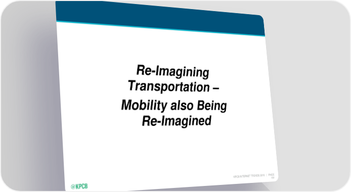Mary Meeker's Annual Internet Trends Report Page 151 Page 153Re-Imagining Transportation – Mobility also Being Re-Imagined KPCB INTERNET TRENDS 2016 | PAGE 151