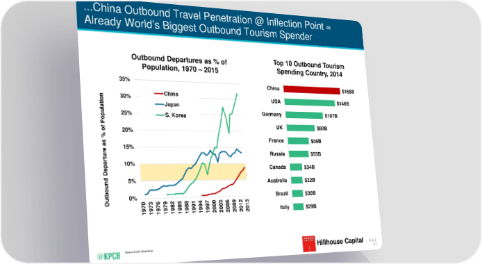...China Outbound Travel Penetration @ Inflection Point = Already World’s Biggest Outbound Tourism Spender Outbound Departures as % of Top 10 Outbound Tourism Population, 1970 – 2015 Spending Country, 2014 35% China $165B 30% China USA $146B on i t Japan a Germany $107B opul 25% S. Korea P UK $80B of 20% % France $59B s a 15% e Russia $55B ur t r 10% pa Canada $34B e D 5% Australia $32B bound 0% Brazil $30B ut O 70 73 76 79 82 85 88 91 94 97 00 03 06 09 12 15 19 19 19 19 19 19 19 19 19 19 20 20 20 20 20 20 Italy $29B Source: CLSA, World Bank. KPCB INTERNET TRENDS 2016 | PAGE Hillhouse Capital 174