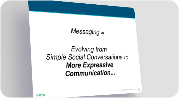 Mary Meeker's Annual Internet Trends Report Page 100 Page 102Messaging = Evolving from Simple Social Conversations to More Expressive Communication... KPCB INTERNET TRENDS 2016 | PAGE 100