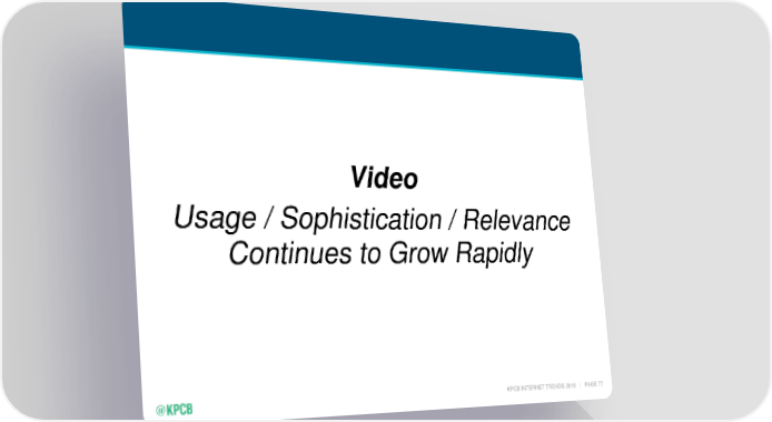 Mary Meeker's Annual Internet Trends Report Page 77 Page 79Video Usage / Sophistication / Relevance Continues to Grow Rapidly KPCB INTERNET TRENDS 2016 | PAGE 77