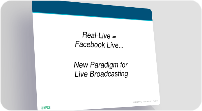 Mary Meeker's Annual Internet Trends Report Page 84 Page 86Real-Live = Facebook Live... New Paradigm for Live Broadcasting KPCB INTERNET TRENDS 2016 | PAGE 84