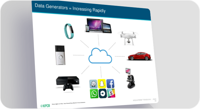 Data Generators = Increasing Rapidly Source: Apple, DJI, Waze, Tesla, Microsoft, Ring, Fitbit, B & H Foto & Electronics. KPCB INTERNET TRENDS 2016 | PAGE 196