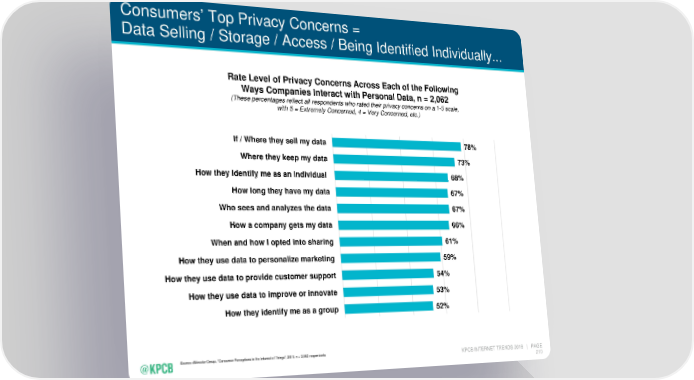 Consumers’ Top Privacy Concerns = Data Selling / Storage / Access / Being Identified Individually... Rate Level of Privacy Concerns Across Each of the Following Ways Companies Interact with Personal Data, n = 2,062 (These percentages reflect all respondents who rated their privacy concerns on a 1-5 scale, with 5 = Extremely Concerned, 4 = Very Concerned, etc.) If / Where they sell my data 78% Where they keep my data 73% How they identify me as an individual 68% How long they have my data 67% Who sees and analyzes the data 67% How a company gets my data 66% When and how I opted into sharing 61% How they use data to personalize marketing 59% How they use data to provide customer support 54% How they use data to improve or innovate 53% How they identify me as a group 52% Source: Altimeter Group, “Consumer Perceptions in the Internet of Things”, 2015. n = 2,062 respondents. KPCB INTERNET TRENDS 2016 | PAGE 210